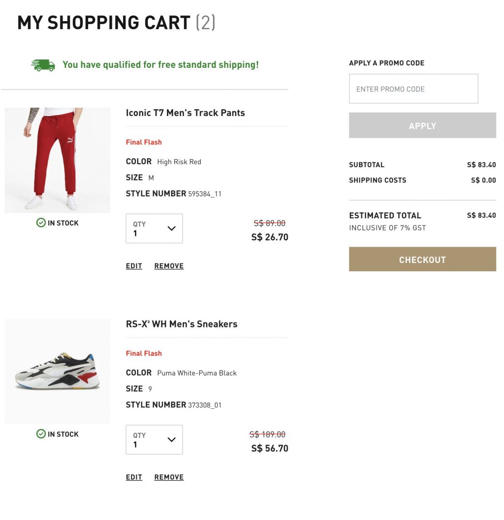 Puma官網消費滿75新幣即可Free Delivery