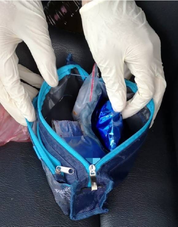 肅毒局從另一輛汽車上,起獲一個裝滿毒品的收納袋。(照片:CNB)