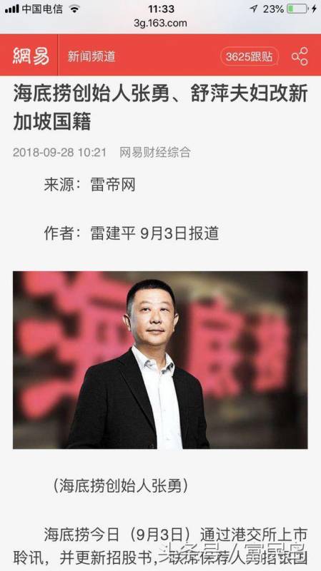 海底撈成功上市!張勇夫婦身價一年暴漲10倍,改成新加坡國籍