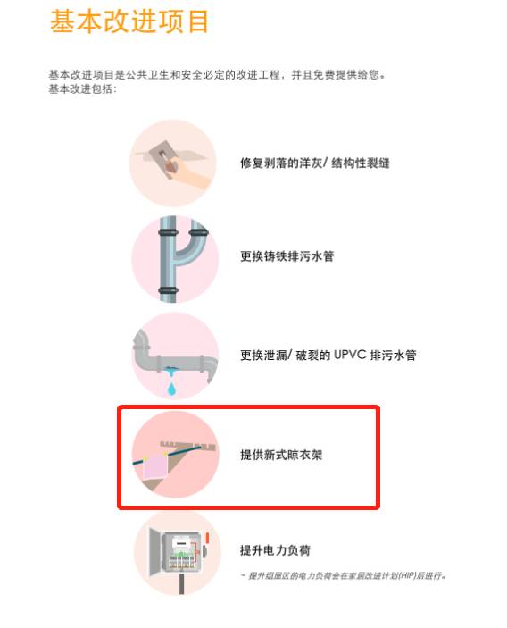 其實,爲了改善戶外晾衣的問題,新加坡政府也是花了不少心思。2007年8月推出家居改進計劃,便有包括拆除現有的戶外晾衣管口,並且以新型的晾衣架取而代之。