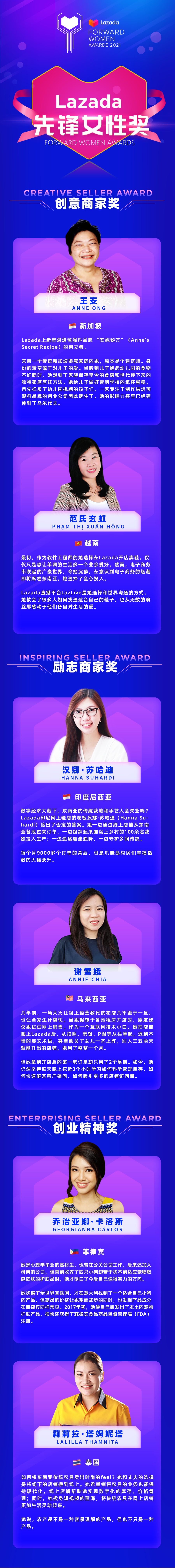 東南亞女性正在數字經濟大潮中展現出獨特力量。三八國際婦女節當天,Lazada首度頒出2021年度“Lazada先鋒女性獎(Lazada Forward Women Awards 2021)”,來自印度尼西亞、馬來西亞、菲律賓、新加坡、泰國和越南的6位Lazada平台女性商家獲此殊榮。
