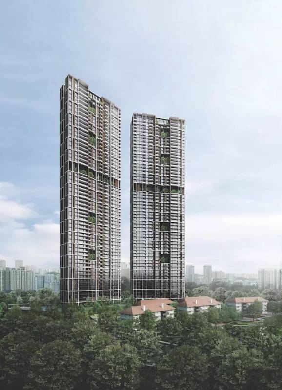 項目由兩座39樓稍有弧度的建築組成,屋頂有天橋連接,是本地首個擁有錯落有致的垂直天空花園的項目。