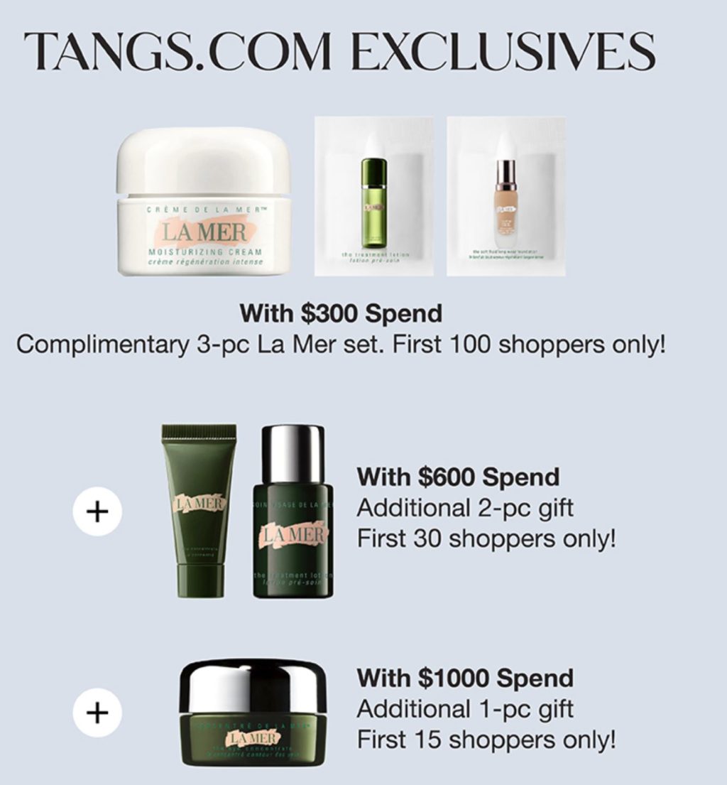 消費滿1000新幣則再加送一件La Mer小樣哦~