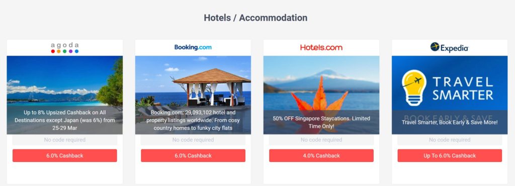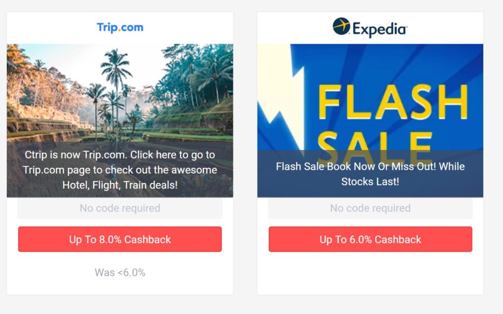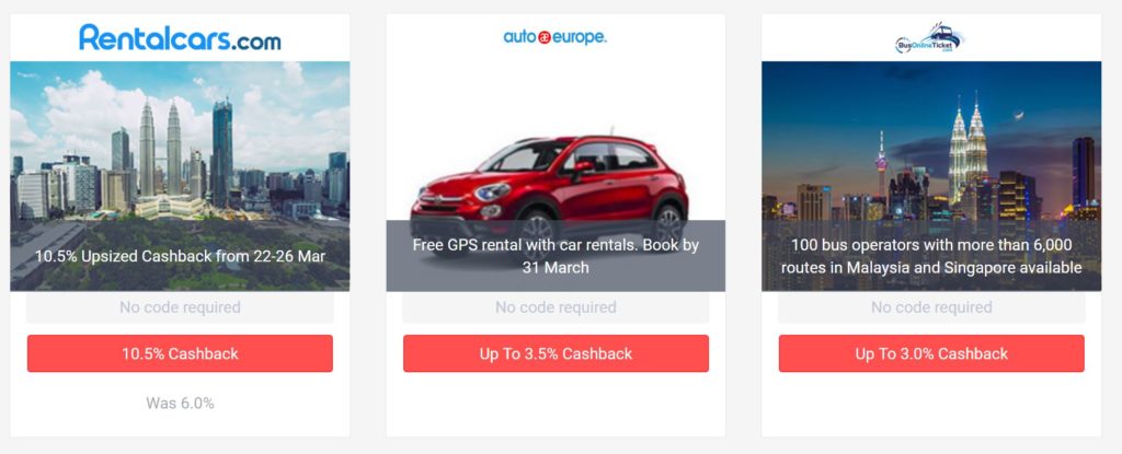 ShopBack提供了幾乎所有旅遊網上訂票渠道的返現