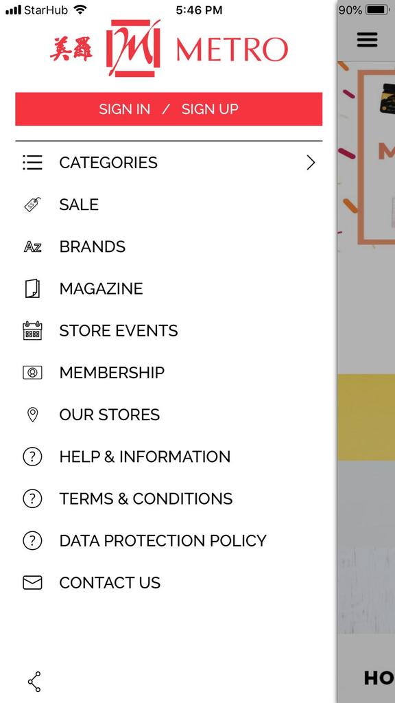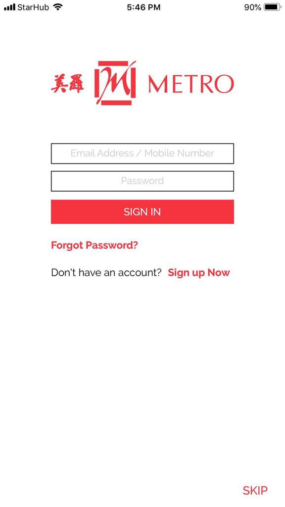 2. 點擊 Sign in/Sign up (美羅標志下的紅色標簽)