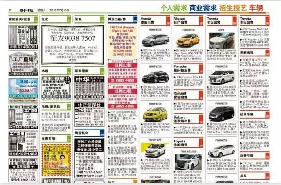 從刊登的版面看,該頁大部分都是賣車的,這位妹紙居然占了兩個“車位”