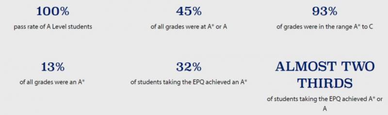 小學采用英國本土教材,學校同時設置了英國國家教育部統一規定的國家課程、英國劍橋國際普通中學課程(IGCSE)、國際文憑IBDP課程、以及劍橋A水准課程、文憑受全球認可。中學11年級選擇 GCSE 課程或者 IGCSE 課程。12年級可以選擇 A’level 或者 IB 課程。