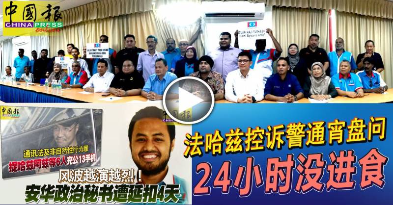 峇帝星今日偕同公正黨霹州領導層在黨霹州總部,就法哈茲被警方扣查一事召開記者會說,這是他與其余3名代表律師,昨日在吉隆坡金馬警區總部與法哈斯見面時得知。