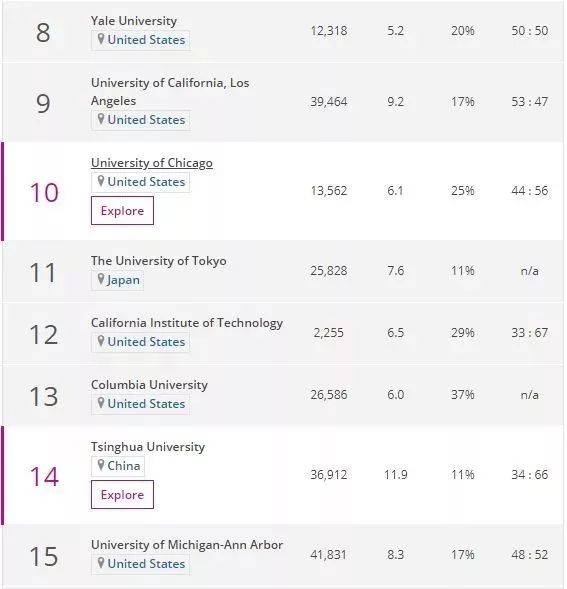 在本次排名中,TOP10依舊以美國大學爲主,哈佛大學連續第9年位列榜首,其他還有42所美國大學名列前100,比去年少了一所。而英國方面,依舊是劍橋和牛津排在前列,其它學校排名較去年有所變動。而清華大學拿到14名,獲得亞洲第一!北京大學排名也不遜色,排名全球第17位,亞洲第二!新加坡國立大學也榜上有名,排在全球第24位!
