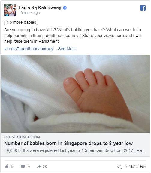 此外,議員黃國光今早也通過面簿詢問公衆對生育率下滑的看法,並表示會在國會提問,至今有129則留言提出意見,26人轉發。反應一般般,看來國人對于生育真的不太感興趣啊。