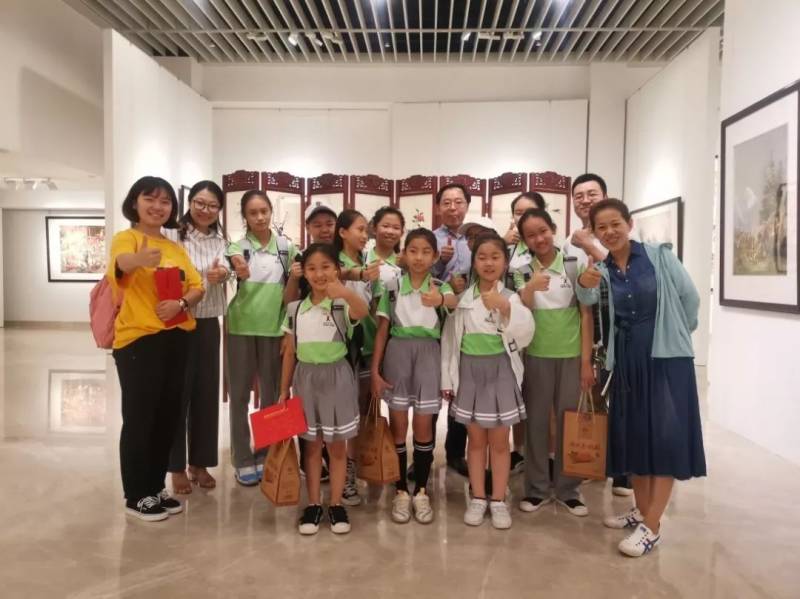 革新裏小學師生與中國文化中心主任肖江華、文化活動部主管呂佳及馬蘭花藝校教師于涼合影留念