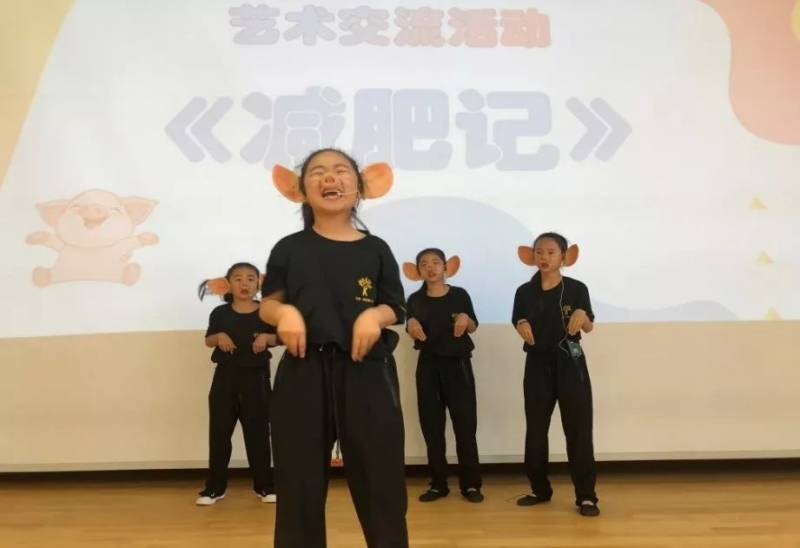 隨後,革新裏小學的同學們還爲大家帶來了兩部優秀的原創戲劇作品《減肥記》與《借口》的精彩片段。《減肥記》中演員們可愛的小豬形象和歡快的歌舞引得在場師生笑聲不斷;而在《借口》一劇中,觀衆們不僅感歎于主人公“樂樂”通過自己的努力擺脫了“借口”的困擾,同時也被這部劇中所反映的主題思想所深深觸動。小演員們以娴熟的表演贏得了新加坡師生的熱烈掌聲。