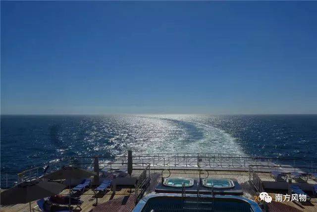 在勻速航行的郵輪沒事幹,我就會經常跑去觀察海洋。在馬六甲海峽航行,海水顔色因深淺不同會形成不同的顔色,先是藍色,再變成綠色,海水越深,顔色就會變深變黑。蔚藍的天空變成了淡藍色,雲層也不是白色,而是變成了大片大片的灰白。