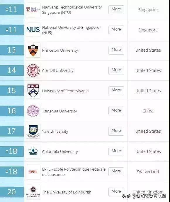 而就在此前的2020年QS世界大學排名中,新加坡南洋理工大學還和新加坡國大一起排名全球第11位,領跑亞洲大學!在泰晤士高等教育公布的2019年全球年輕大學排名中,在全球60個國家共351所年輕大學中,新加坡也僅南洋理工大學一所高校上榜,位列全球第3。