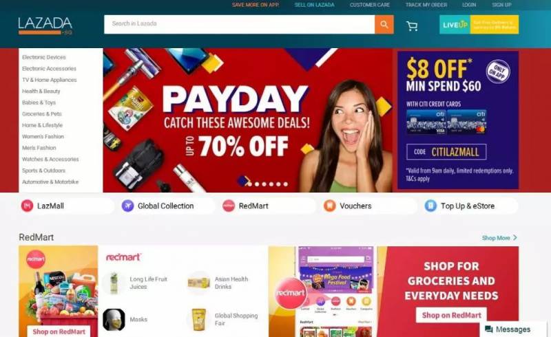 Lazada成立于2012年,在東南亞各地開設B2C電商平台,分別在印度尼西亞、越南、馬來西亞、泰國與菲律賓開設了電子商務服務,2014年正式進軍新加坡。