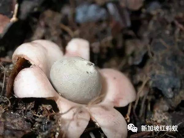 這個長得和“臭名遠照”大王花類似的腹菌,有著6到8片的外層,形成星星狀。而名爲“腹菌”也意指著它的中間,類似于腹部的地方就躺著裝滿著菌孢的白色圓球。