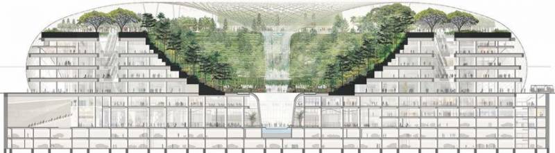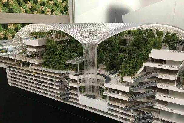 今年4月份新開設的星耀樟宜(Jewel Changi)將機場的可持續社區理念推向了一個新的高度。作爲現有航站樓的橋梁,星耀樟宜將自然、文化和休閑設施結合在了一起,創造出了一個以社區爲中心的新型建築。星耀樟宜的心髒位置是一個森林山谷,這是一個階梯式室內花園,提供了許多空間可以進行互動體驗,內設有步行小徑,瀑布,還有安靜的座位區。這裏有超過200種的不同種類的樹木和植物,有世界上最高的室內瀑布——“雨漩渦”——從圓頂屋頂上的一個眼洞向下面的七層森林山谷花園傾瀉而下,既有助于景觀環境的冷卻,還能夠收集大量的雨水用于圍繞該建築的一些再利用項目。