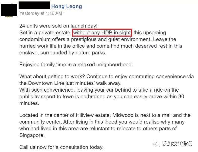 “即將推出的新公寓位于私人住宅區,放眼望去看不見任何組屋,讓你有一個優越甯靜的環境……”。