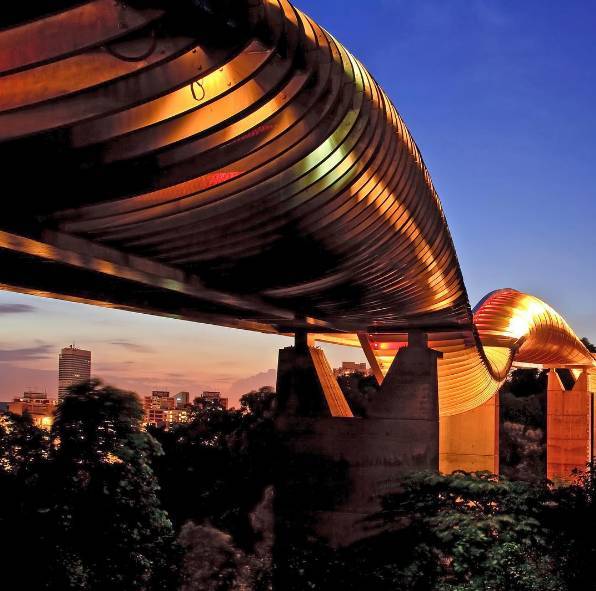 亨德森波浪人行橋是新加坡最高的人行橋,距離地面 36 米,橋梁總長 274 米,上下起伏的波浪看起來設計感十足。獨自或結伴在橋上走走,累了還有私密性很好的休息區,不僅適合拍照,也是跑步親近大自然的好地方。想要一點浪漫?那就在傍晚帶TA來,燈光映襯晚霞,氣氛滿格。