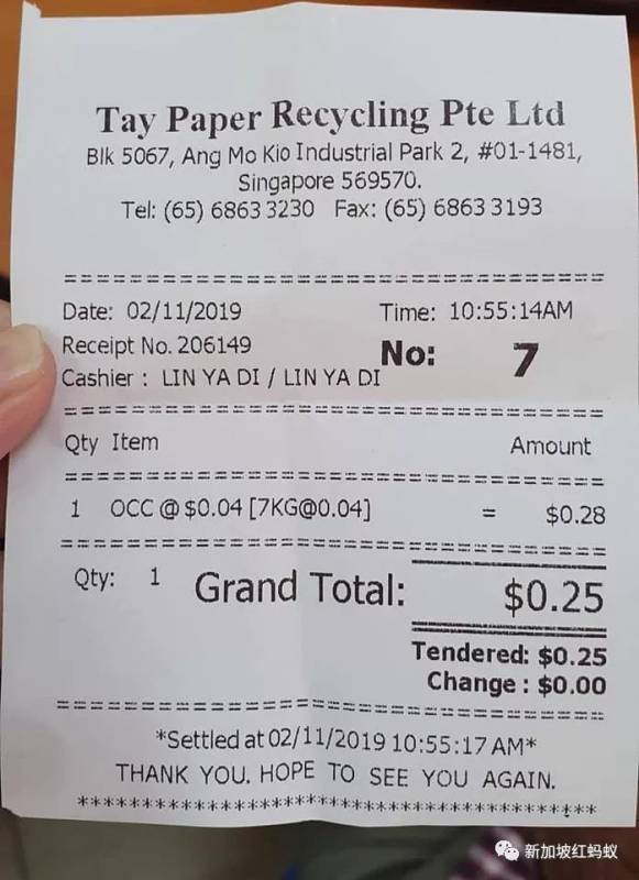 但更令網民憤憤不平的是在其中一張收據中顯示,有回收公司竟然將老人家少得可憐的2角8分“血汗錢”,還下舍去掉3分錢,變成2角5分。
