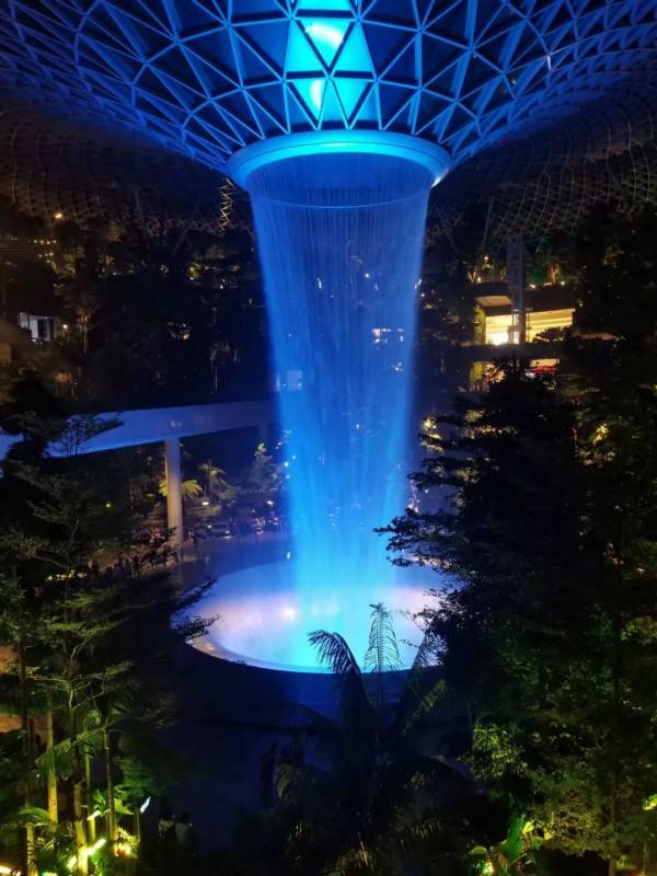進入“星耀樟宜”,首先映入眼簾的就是位于建築中央的雨漩渦(HSBC Rain Vortex)。它是目前世界上最高的室內瀑布,絢麗壯美,高達40米,四周是園林景觀森林谷(Shiseido Forest Valley)。其它遊樂設施,如宏利天空之網(Manulife Sky Nets)、樹籬迷宮(Hedge Maze)、鏡子迷宮(Mirror Maze)和奇幻滑梯(Discovery Slides)等