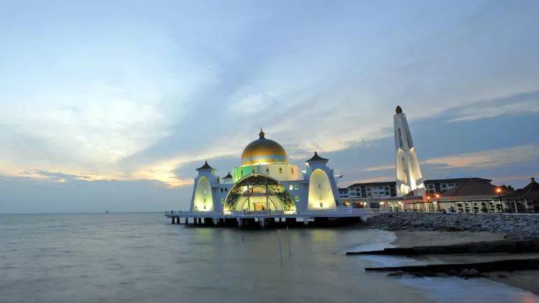 傍晚時分,漫步馬六甲海峽,看夕陽夕斜,波光粼粼的海面上,海峽清真寺的金色穹頂正熠熠生輝,一切就如油畫一般,美不勝收。