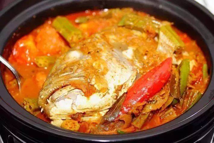 咖喱魚頭的做法是將紅鲷魚的魚頭與蔬菜放在辣味的咖喱中一起炖煮,再用酸酸的羅望子調味,最終造就了這道回味無窮的招牌菜。華人的吃法是搭配米飯,或者用松軟的小圓面包蘸食咖喱汁;印度人吃法則加上米飯、帕帕丹和印度泡菜。