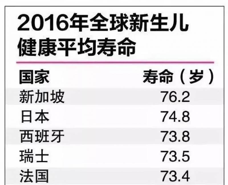 生活在新加坡的人的壽命也理所當然的長了,世界衛生組織2016年數據顯示,新加坡平均健康壽命排名世界第一,達到76.2歲,注意是健康壽命。