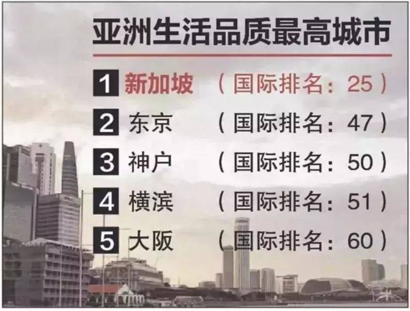 2018年美世的城市生活品質調查中,新加坡位列亞洲第一,遠超東京、香港地區等。