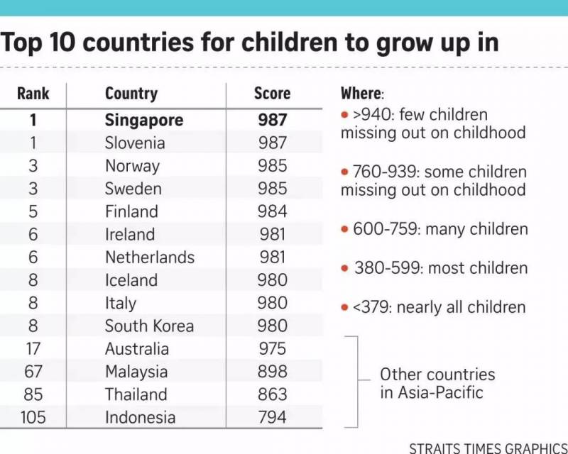 國際非政府組織救助兒童會,2018年發布的《童年終結數據》報告,新加坡又成爲了全世界最適合孩子成長的國家。