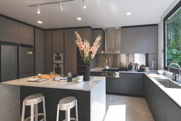 第一層是寬敞的起居和用餐區。Centra集團的Jason表示,這間封閉的廚房面積很大,除了配備Viking爐具外,還配備了頂級的嘉格納(Gaggenau)電器。Viking爐具是最好的燃氣竈具之一。浴室采用意大利品牌Gessi的Villeroy & Boch潔具和設備。