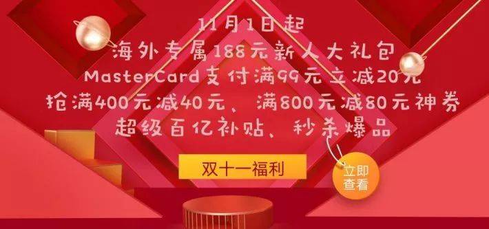 海外新用戶可領188元大禮包,MasterCard支付滿99元立減20元,還有超級百億補貼、秒殺爆品。這個雙十一京東真的是下血本啦!