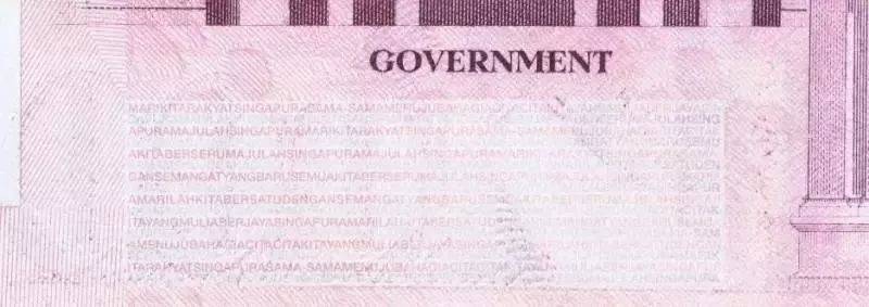 新加坡國歌的歌詞全部用微型文字,印在1000元新幣的背面。