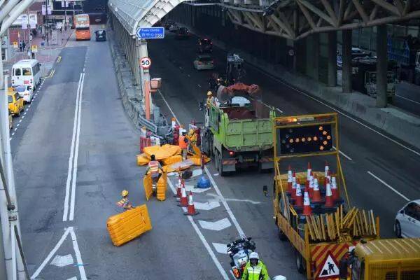11日早7時左右,示威者開始陸續用隔離欄、垃圾桶、錐形桶和各種雜物堵塞多條主要道路和紅磡海底隧道。