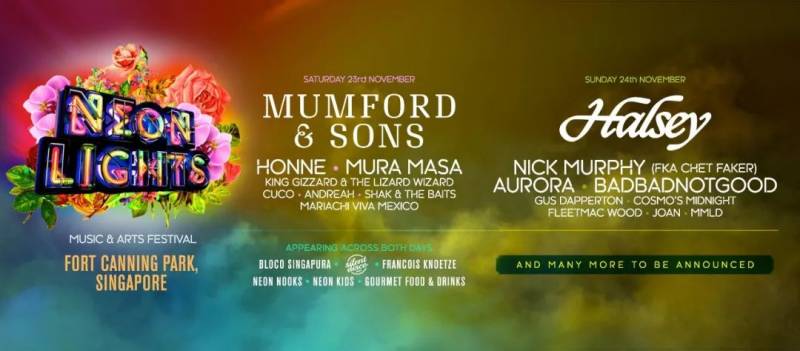 Mumford&Sons,HONNE,Halsey和Aurora等藝術家已確認加入本屆霓虹燈音樂藝術節。除了著名音樂家的現場表演之外,大家還可以在主舞台周圍的各個區域體驗有趣的表演藝術家,實驗表演和互動空間。
