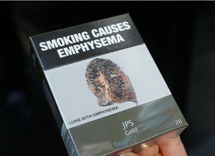 煙盒上面的最醒目的,黑底白字並不是品牌哦,而是勸誡你不要抽煙的標語:“吸煙至盲”“吸煙引發癌症”“別讓你的孩子吸二手煙”