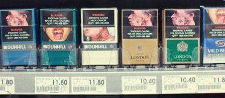 列在封閉的櫃裏,只有在顧客主動詢價時才可出示一份僅以一種官方語言印制但沒有煙草圖片的價目表。