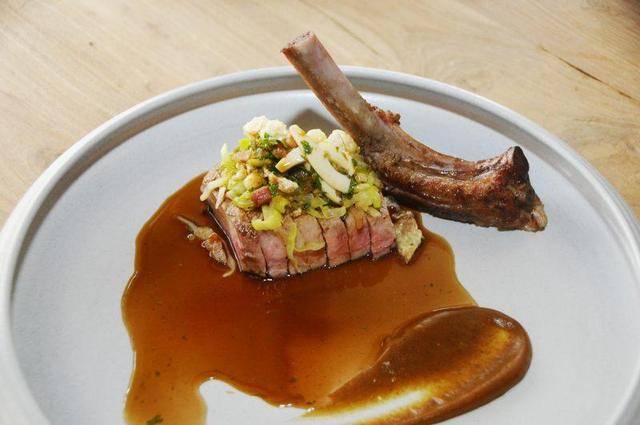 主菜的豬勒排,已經將肉切好成一片片,但是仍然以肋骨做爲裝飾,肉片吃起來有淡淡的焦味。甜點則是布丁蛋糕和冰淇淋,布丁蛋糕不會太甜,一旁站立的冰淇淋別具巧思,設計成一口的大小,不必擔心融化的問題。
