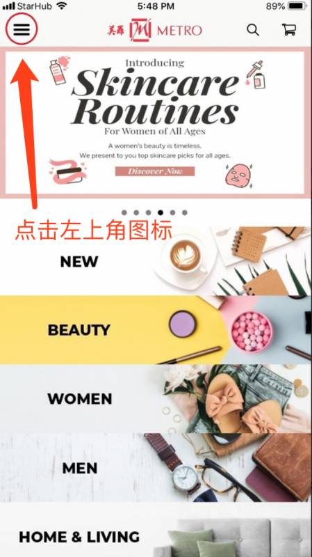2. 點擊 Sign in/Sign up (美羅標志下的紅色標簽)