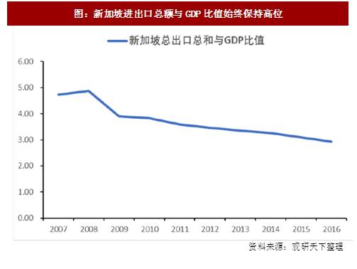 我們從新加坡進出口貿易總額和新加坡GDP的比值中可以發現,新加坡貿易總額是本國GDP的3倍,所以國際貿易一旦出現風吹草動,新加坡的經濟就會出現動蕩。