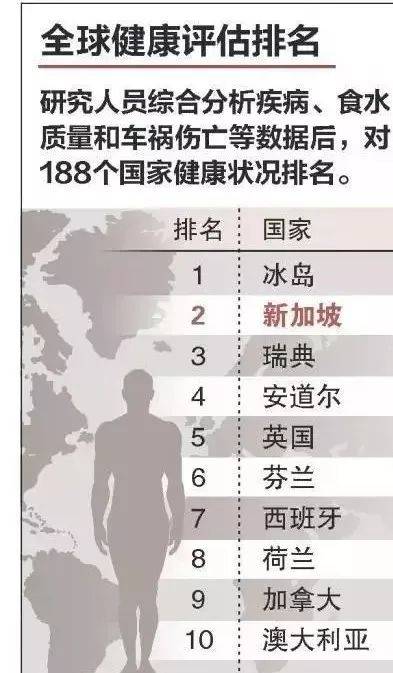根據這項刊登于英國醫學期刊《柳葉刀》(The Lancet)的調查,新加坡在食水安全、衛生、戰亂、夭折和職場風險等多方面,處于非常健康的狀態。