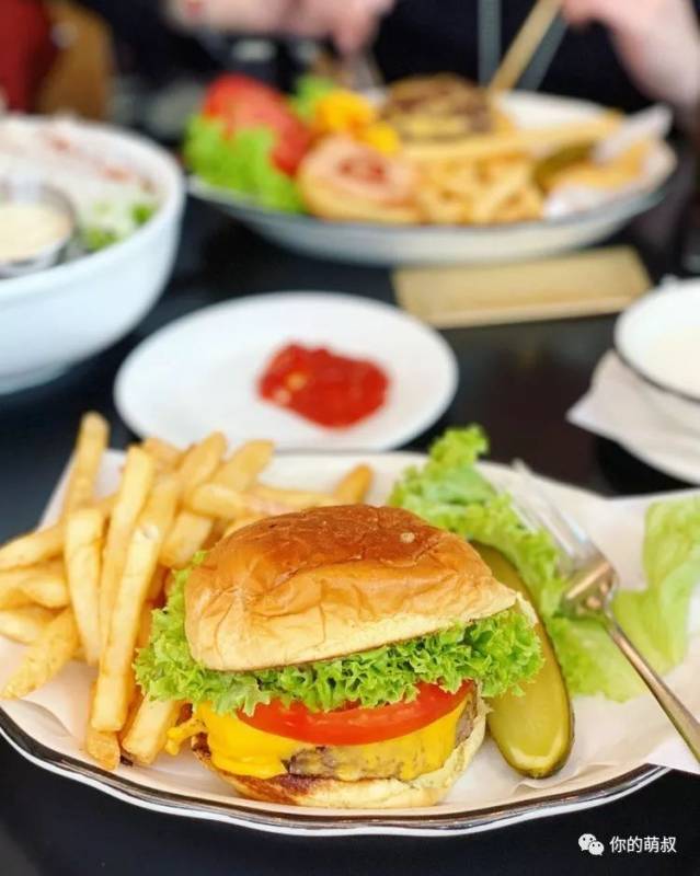 這裏除了有美味的甜品,正餐也可以在這裏解決。我點了一份漢堡薯條和一份沙拉,漢堡個頭很大,裏面夾的牛肉肉質也非常好,沙拉分量很足,管飽了!