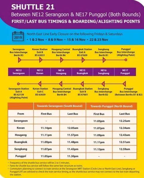 另外,Shuttle Bus21 將作爲替代的交通方式給予乘客們,Shuttle Bus的運行路線則是從Serangoon至Punggol。