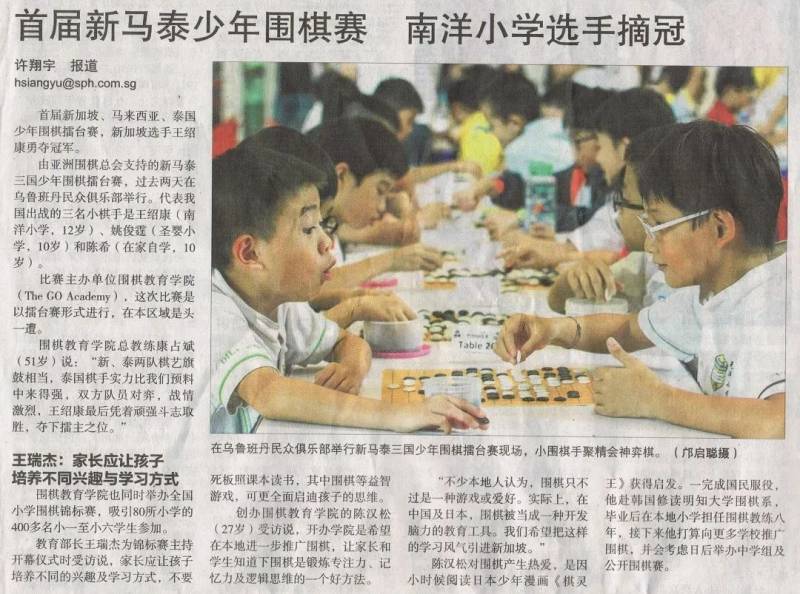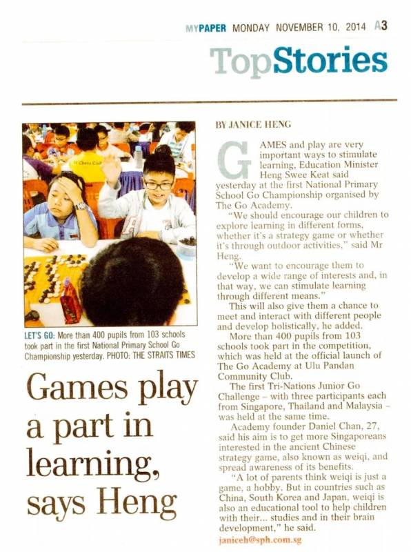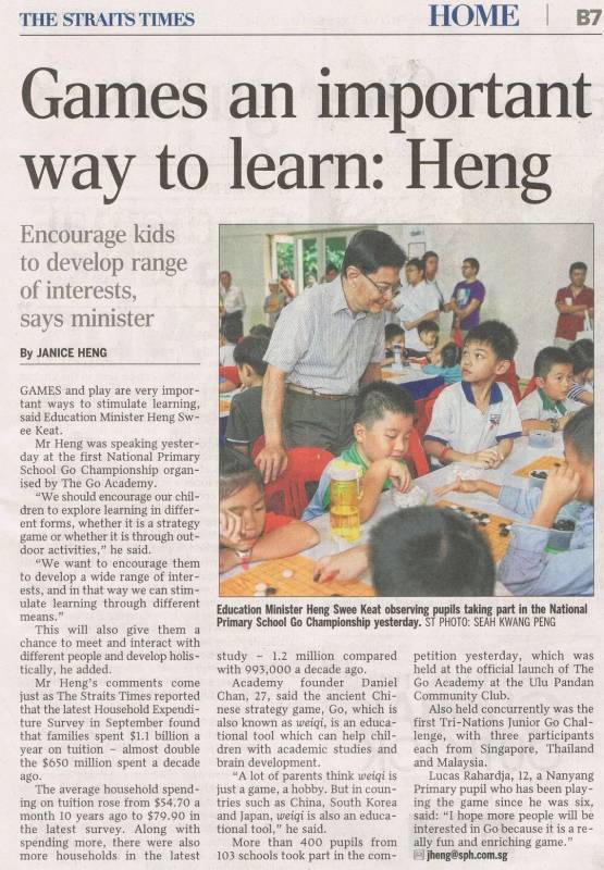 之後新加坡各大報紙紛紛報道了此事,王瑞傑部長表示:孩子應該通過更多遊戲(比如圍棋)來發展孩子的智力。