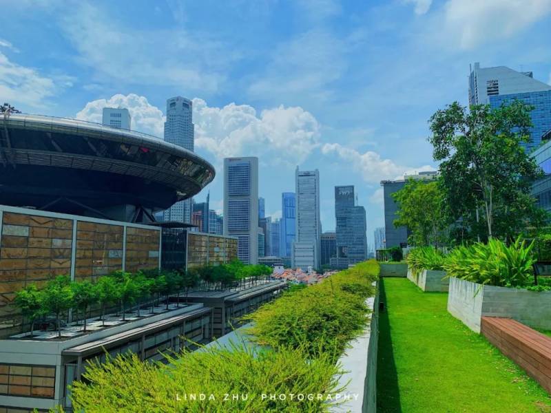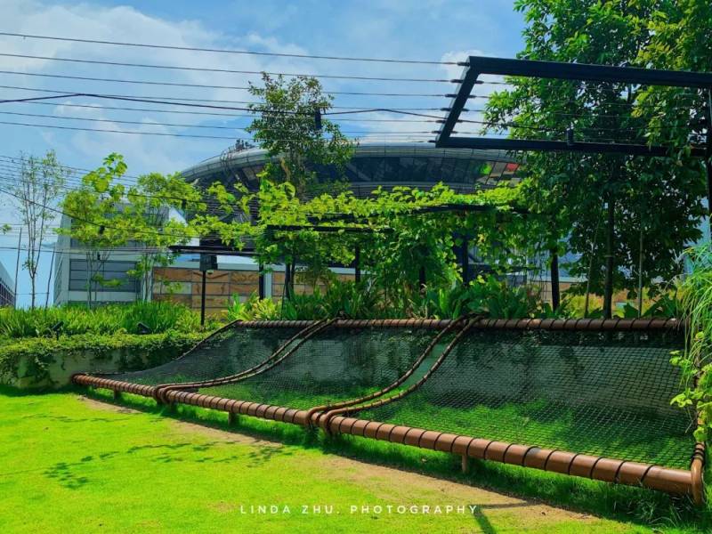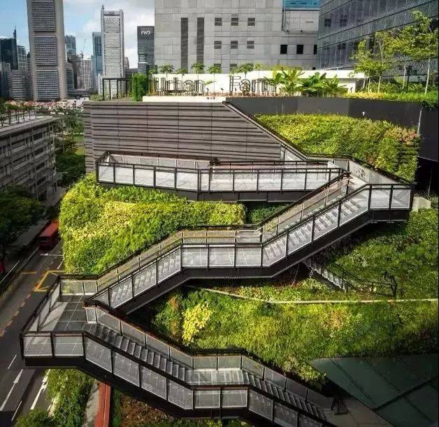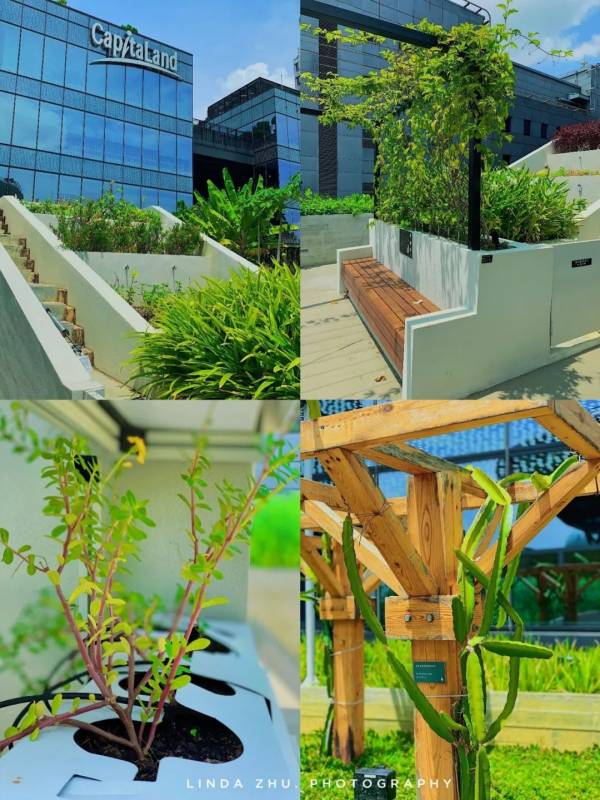 如果正常在商場裏逛著,你不會發現屋頂有這一塊寶地,需要乘坐直梯抵達L7或者從L4室外樓梯上到屋頂,這裏有著新加坡CBD最大的屋頂花園,與其他屋頂花園只是休閑用途不同,這裏可是小寶藏呢!