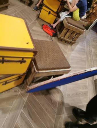 商場圓桌松脫後翻起,壓中女童。(受訪者提供)