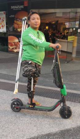獨腳送餐員塞爾(36歲)則說,雖然有公寓禁止外賣人員騎車入內,但多數管理層都會體諒他的情況,允許他騎車送餐。