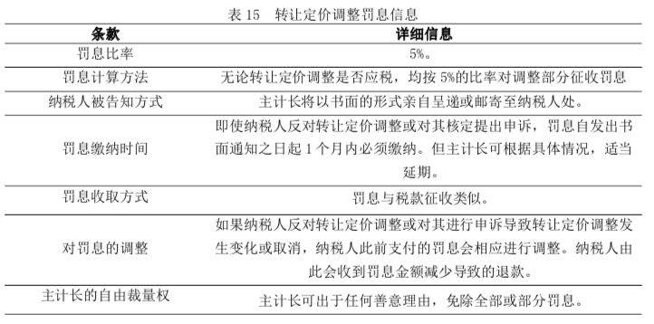 新加坡稅務局在企業轉讓定價調查過程中,如了解到納稅人因未采用 公平交易原則的關聯方交易而低估其利潤時,可能會通過提高納稅人的收入或降低納稅人的成本或損失,進行轉讓定價調整。一旦新加坡稅務局作 出轉讓定價調整,無論其調整是否使企業繳納稅款,納稅人均須按 5%的比 率對該部分調整繳納罰息。下表總結了罰息的詳細信息。