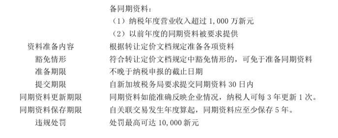 下表總結了新加坡所得稅法第 34F部分對准備轉讓定價同期資料的要求: