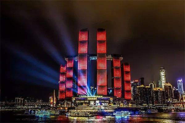 10月15日晚,中新互聯互通項目展廳在重慶來福士揭幕,圖爲重慶來福士華麗亮燈。(圖片來源:四川新聞網)